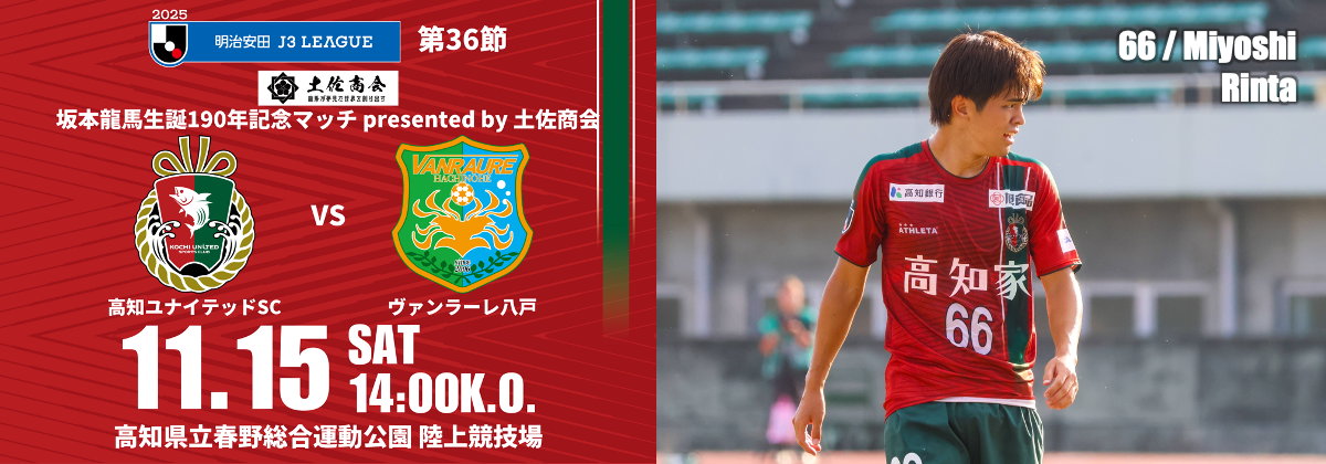 高知県の偉人 坂本龍馬の生誕日である11月15日に開催される冠試合を記念し、先着3,000名様へ「坂本龍馬生誕190年記念マッチ 高知ユナイテッドSC & 土佐商会 コラボTシャツ」を来場者プレゼント!
