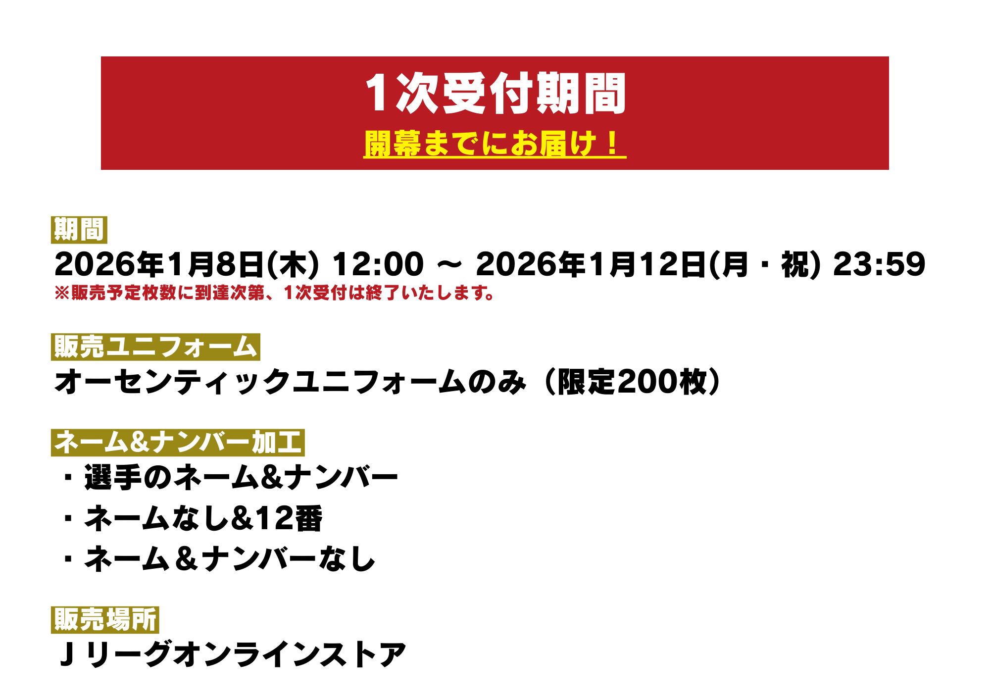 ※ご購入前に、ネーム&ナンバーや配送先住所などにお間違いがないか必ず、ご確認ください。入力情報に、不備等がございますと、発送予定日に商品を発送できませんので、ご注意ください。