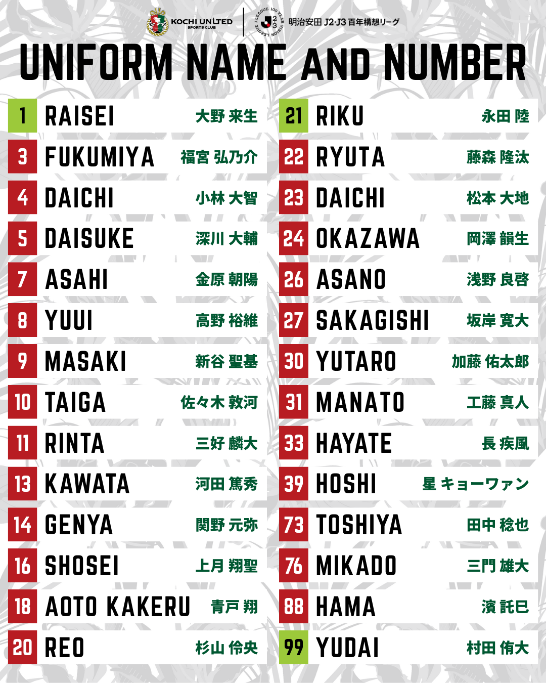 そして背面の襟元には坂本家の家紋を配置。2025シーズン同様に、生誕190周年を迎えた高知県の偉人 坂本龍馬に倣い、クラブとして「新しい時代」を切り開く情熱を表現しています。