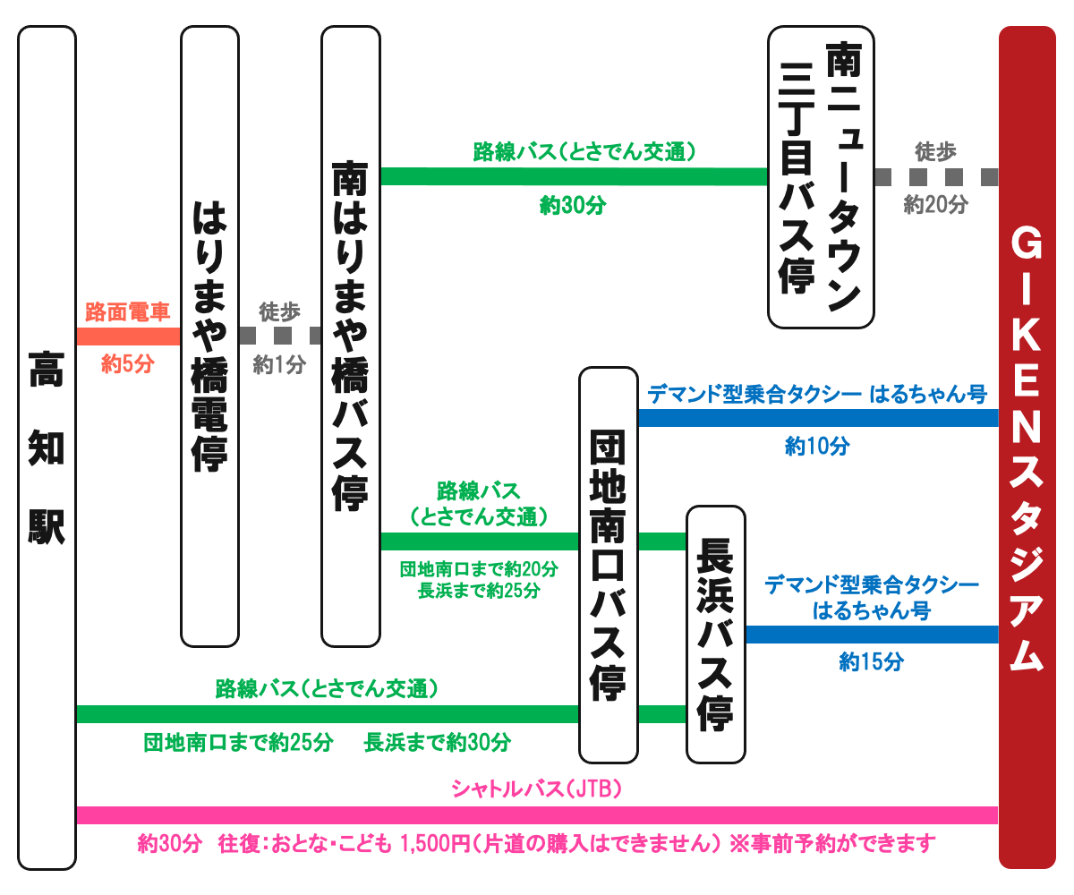 | 高知駅(発) | GIKENスタジアム(着) | |
