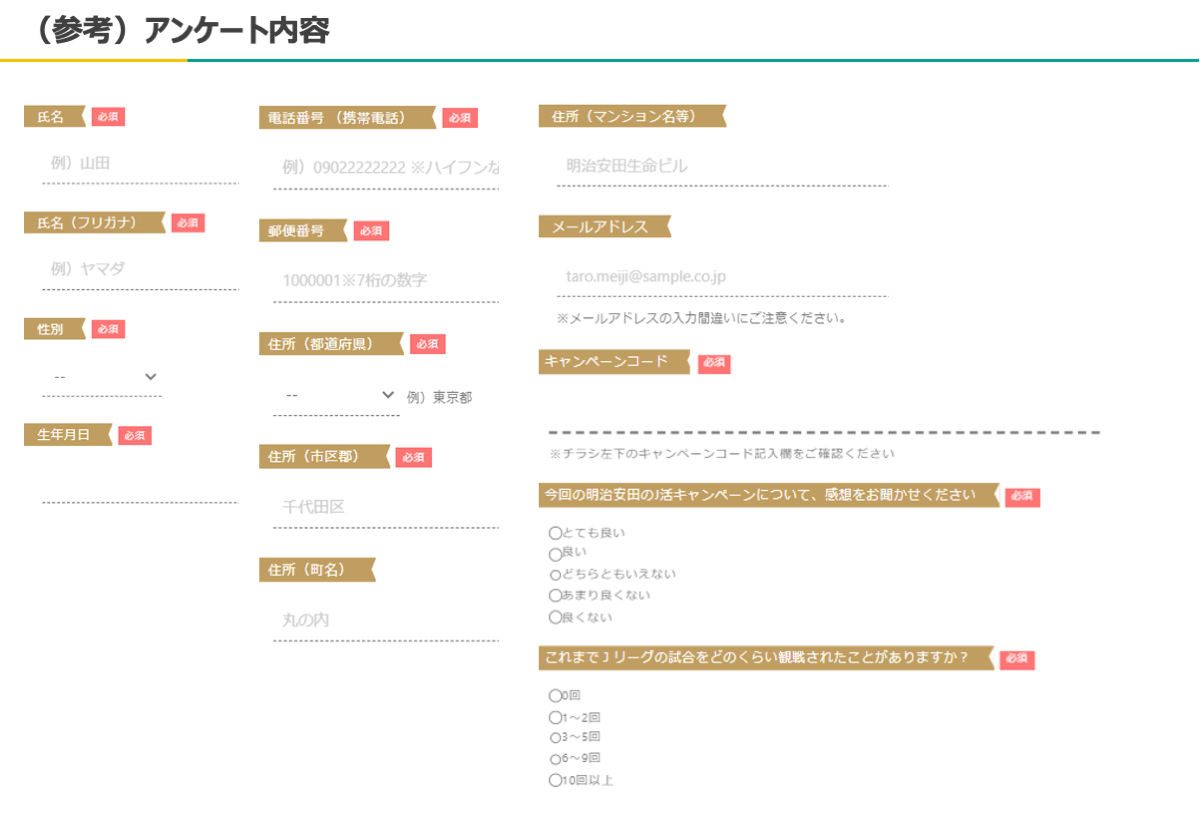・明治安田 様のアンケートには、個人情報を記入いただく欄がございます。同意いただける方のみ、抽選に参加できます。