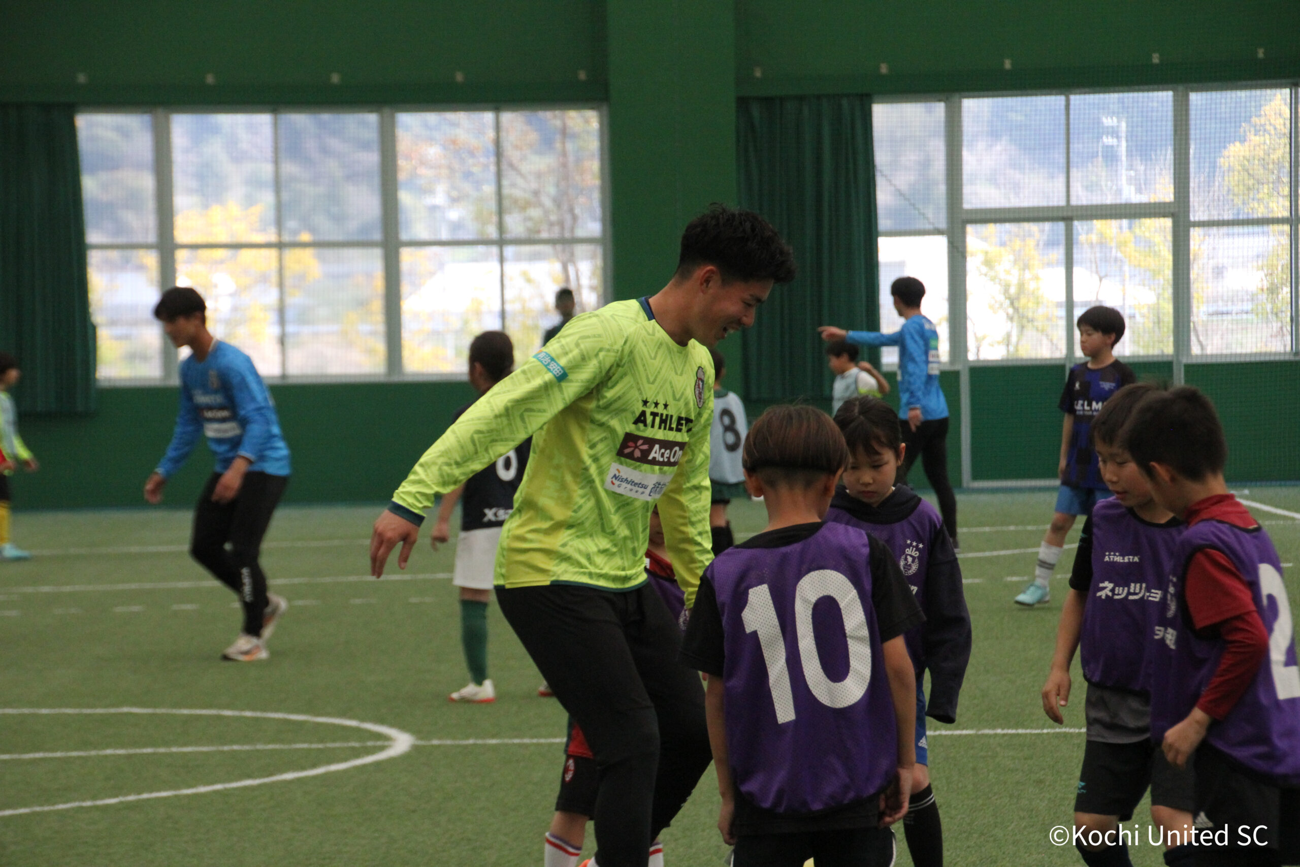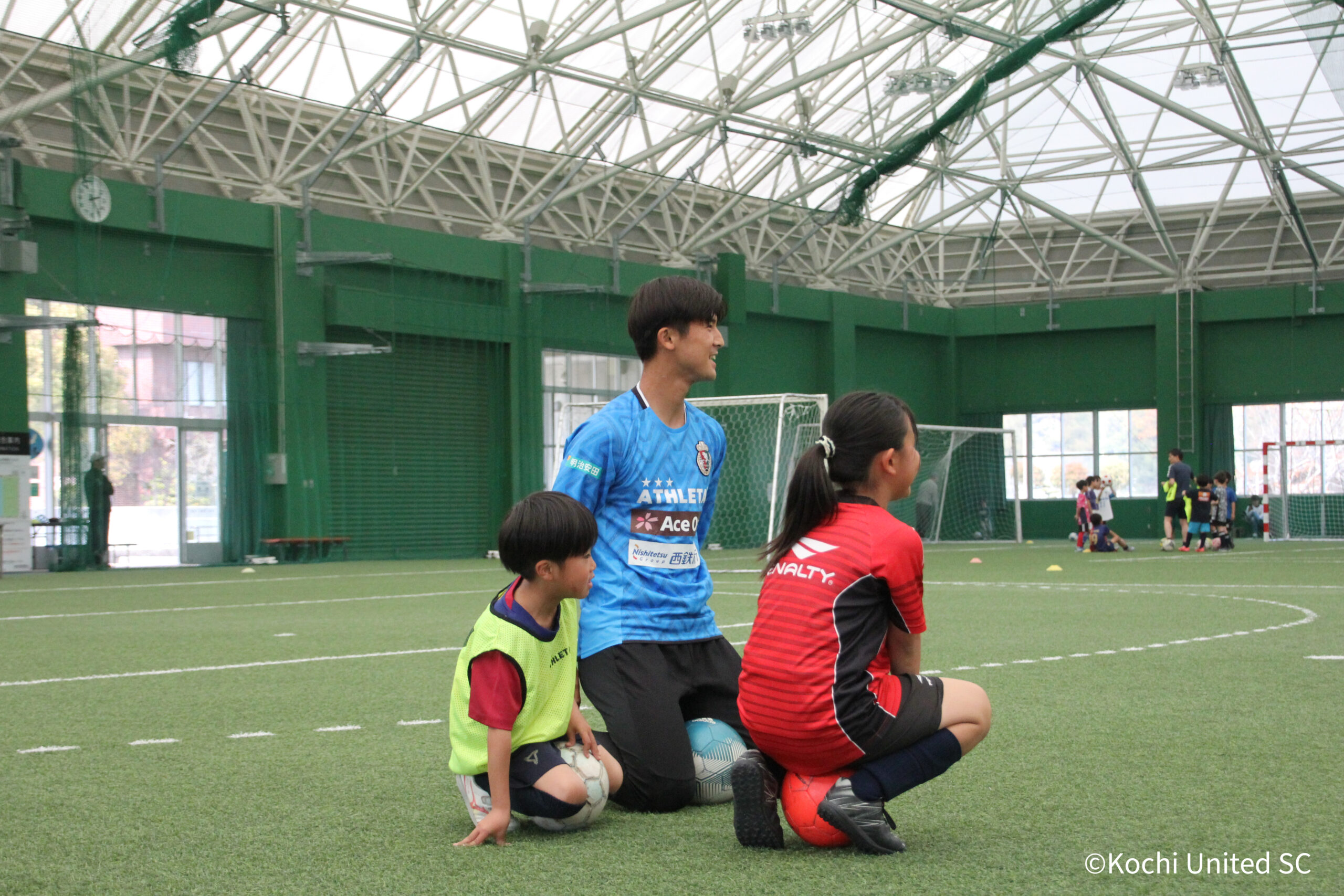 高知ユナイテッドSCからは、スクールスタッフ1名と眞中幹夫 トップチームアシスタントコーチ、大野来生 選手・金原朝陽 選手・永田陸 選手・浅野良啓 選手・加藤佑太郎 選手の選手5名が参加しました。