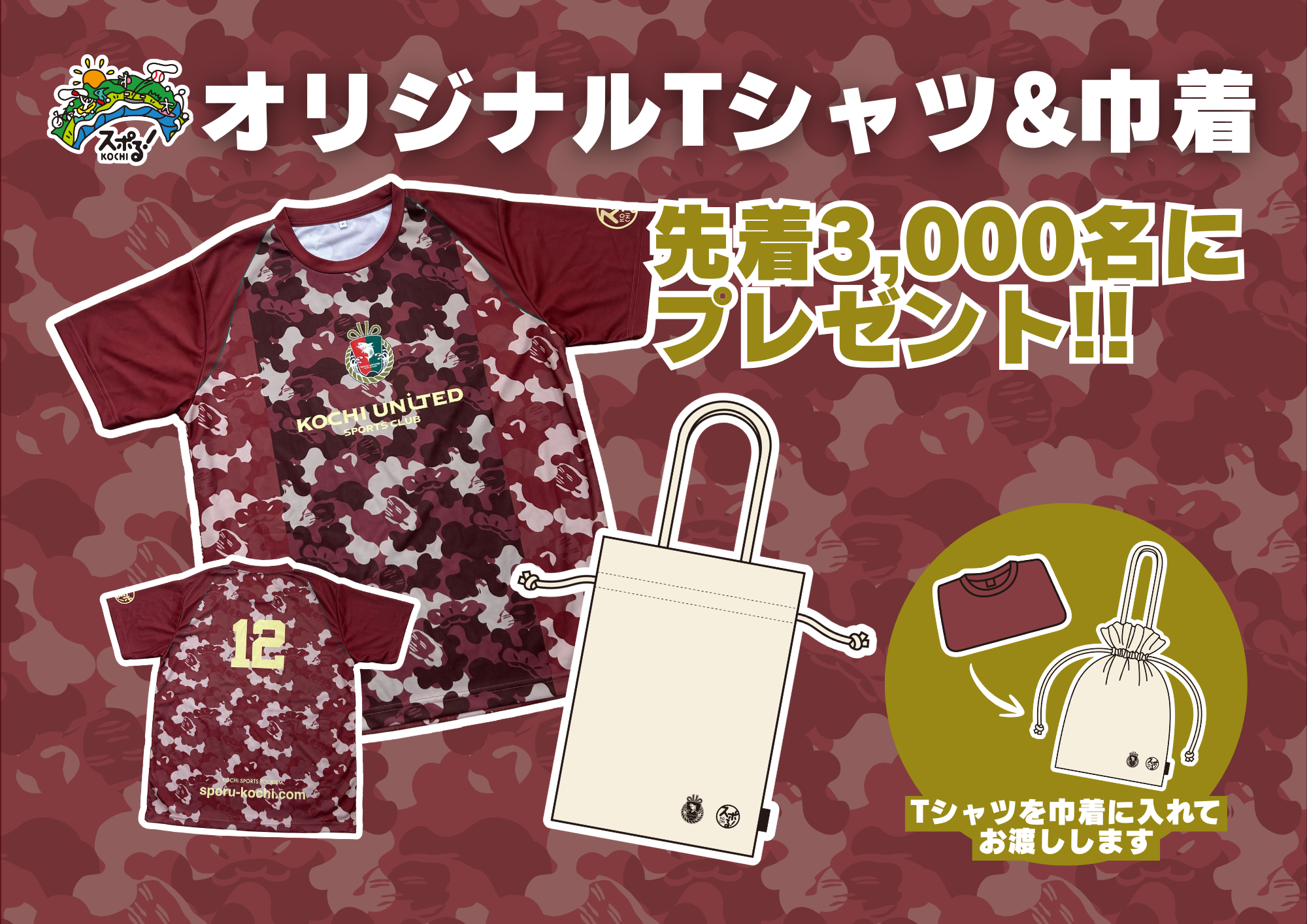 先着3,000名様へ、高知県×高知ユナイテッドSCのオリジナルTシャツと巾着を来場者プレゼント!