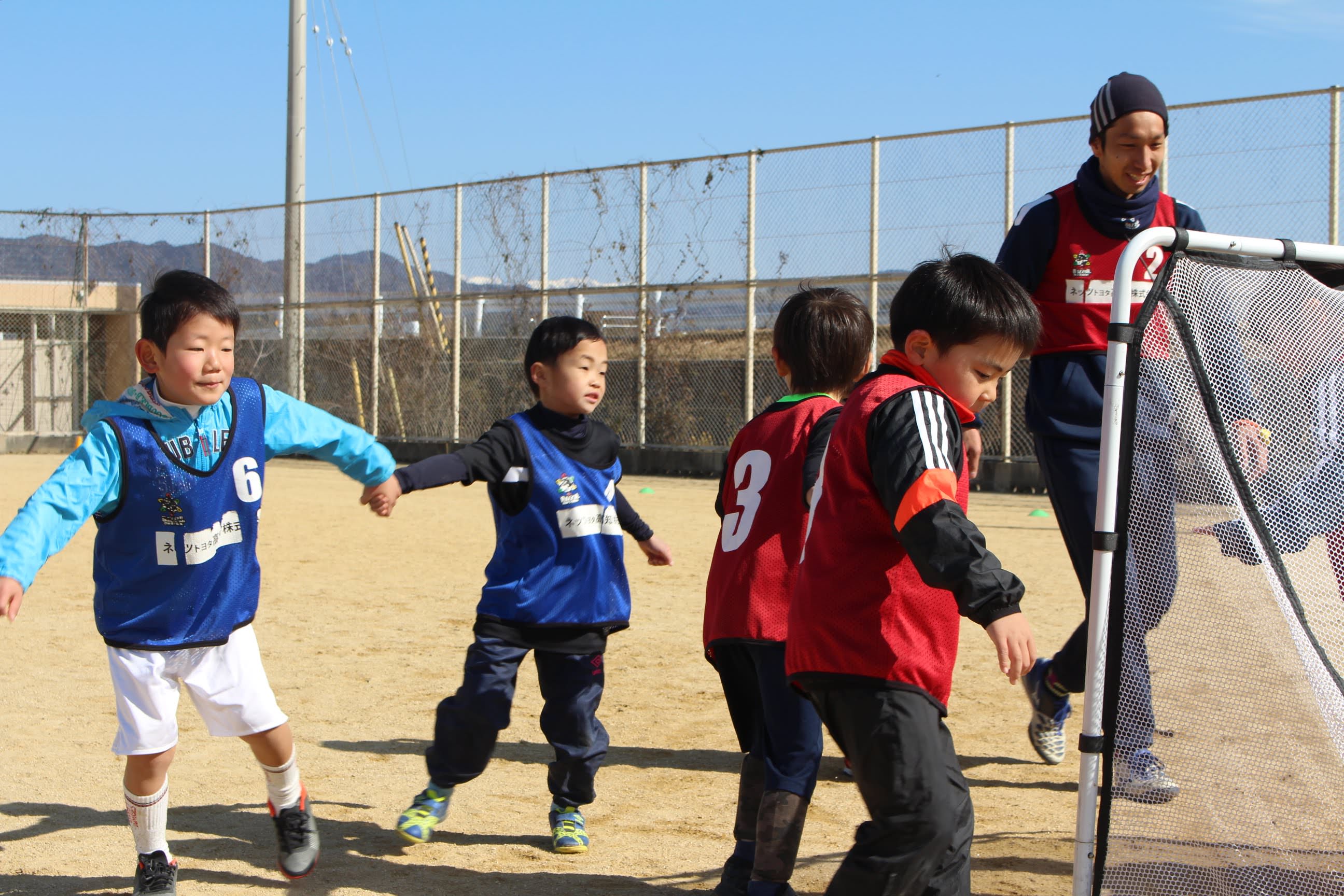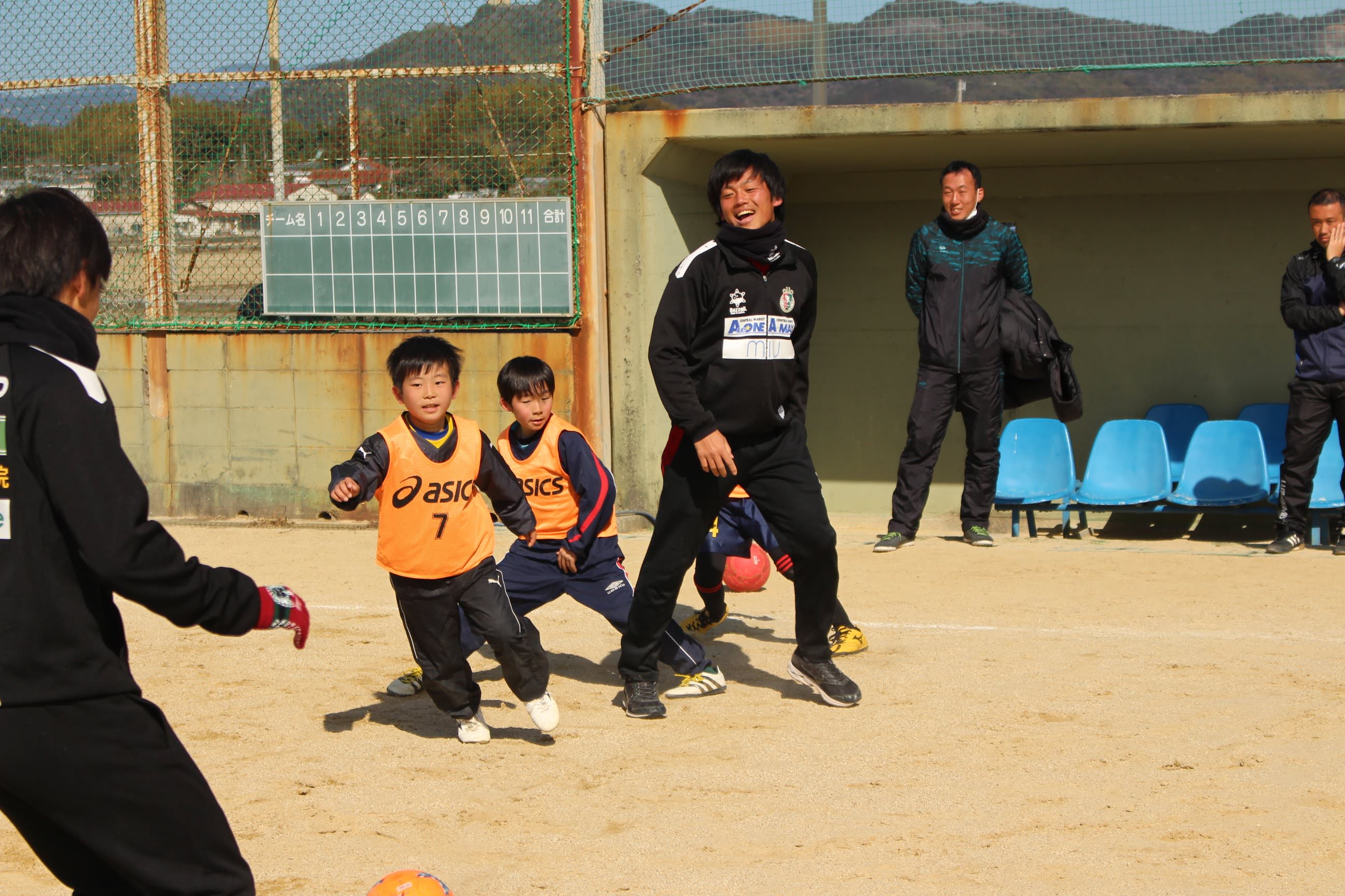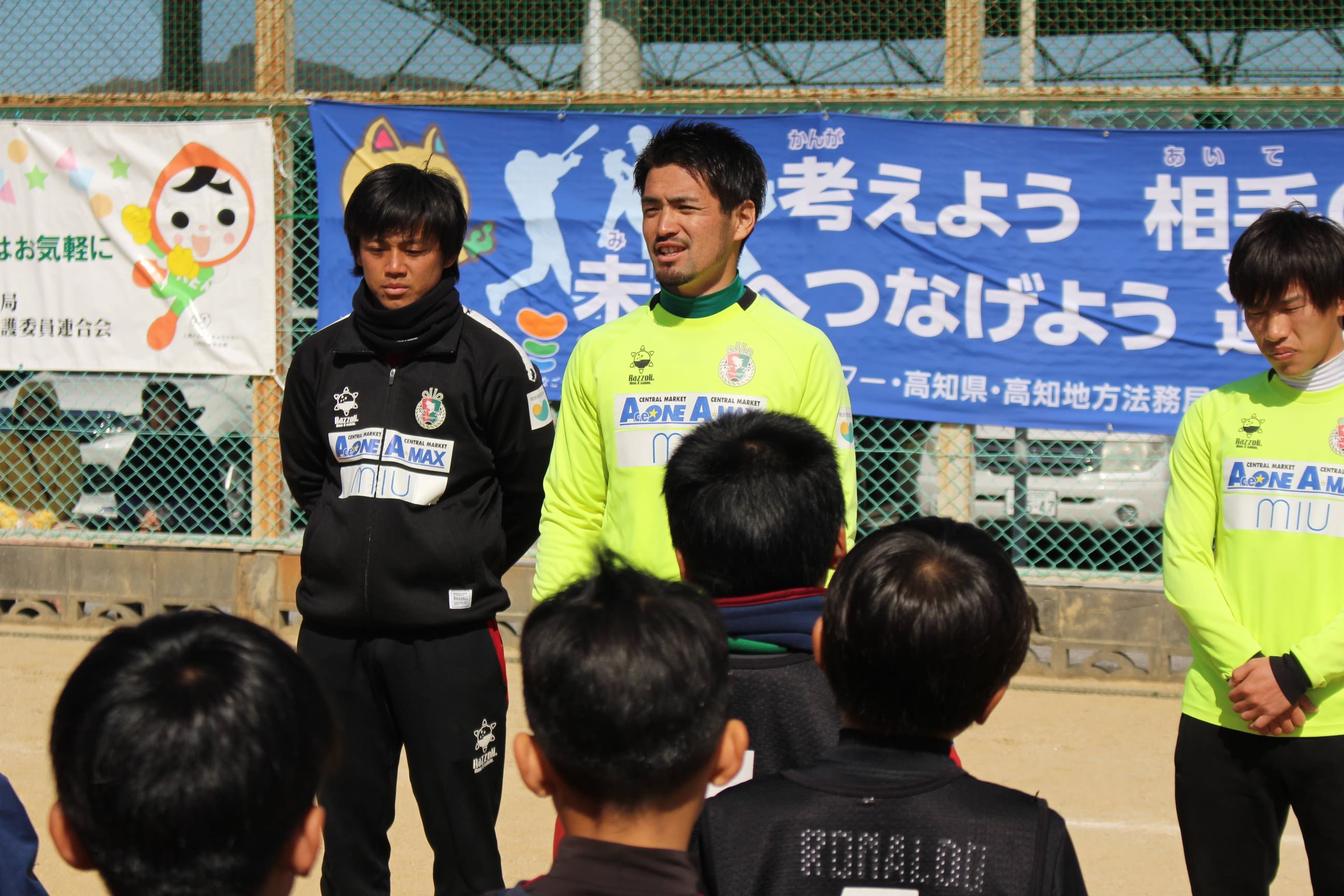 2/18(日)高知県人権啓発センター様主催のサッカー教室を開催し、横竹選手、玉川選手、村上選手とアカデミーから岩﨑コーチ(がんちゃん)、一柳コーチ(いちコーチ)が参加しました。