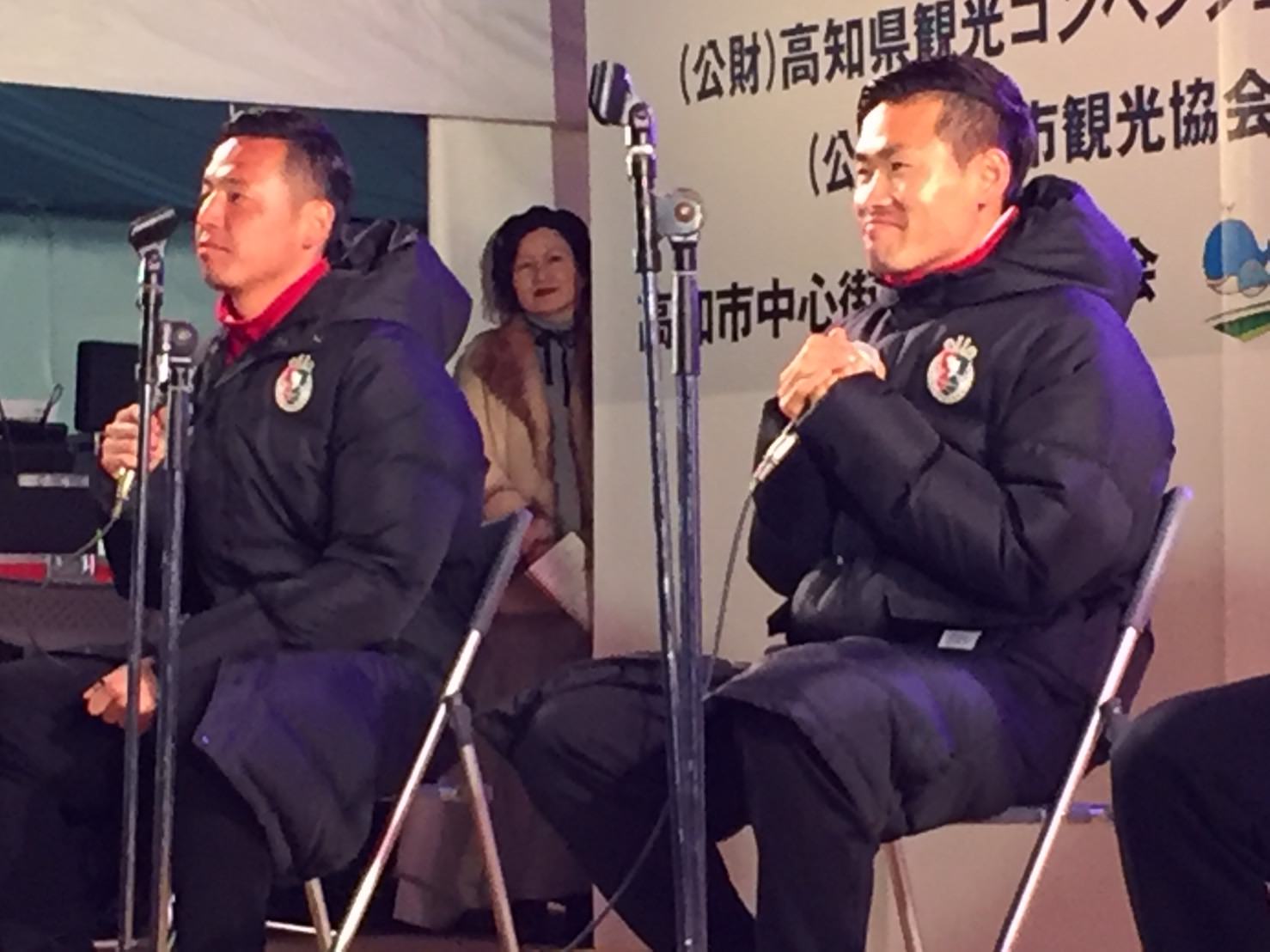 高知に来て日が浅い新田選手、樋口選手の2人も高知のおきゃく文化を体験できました。