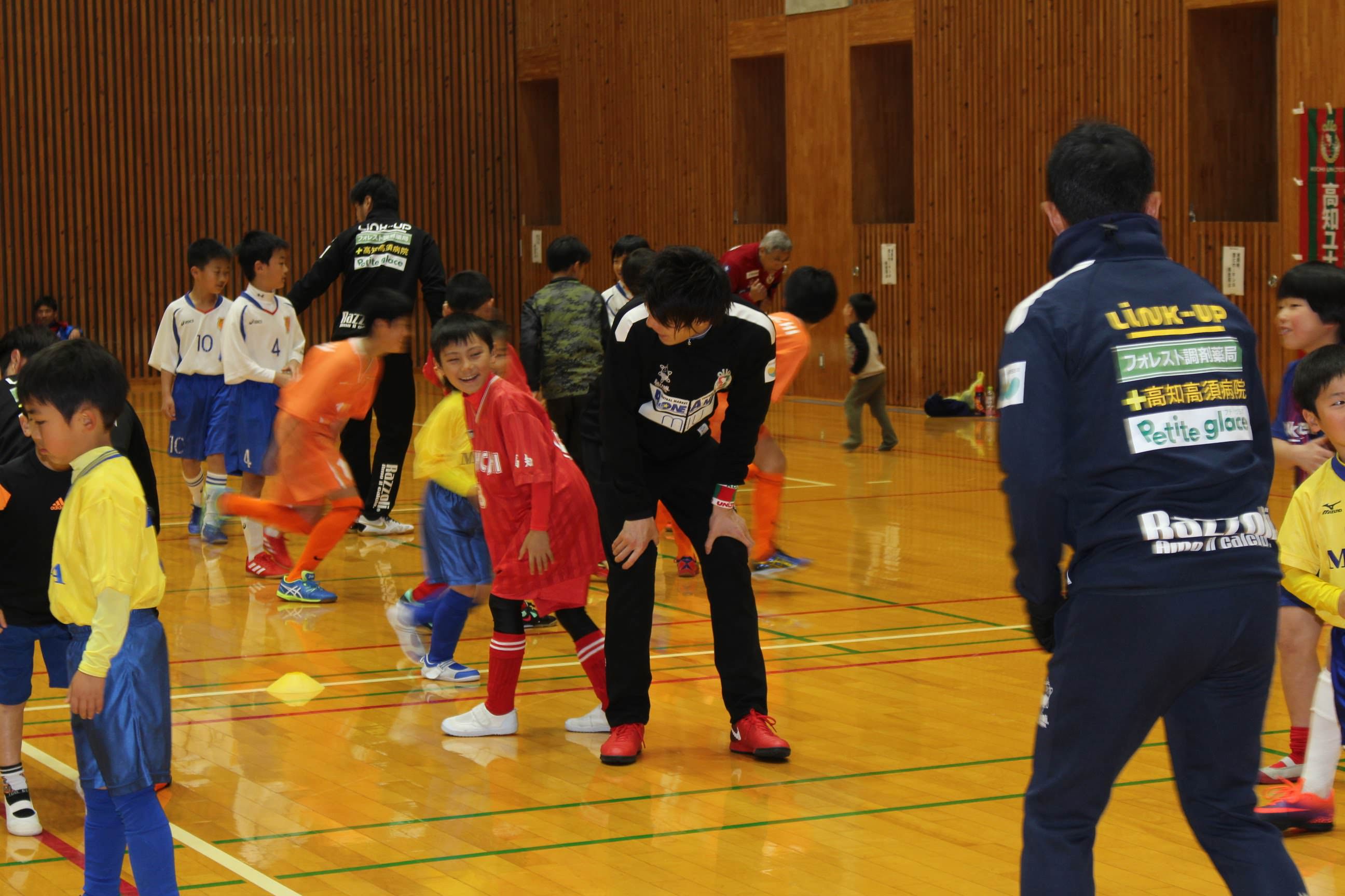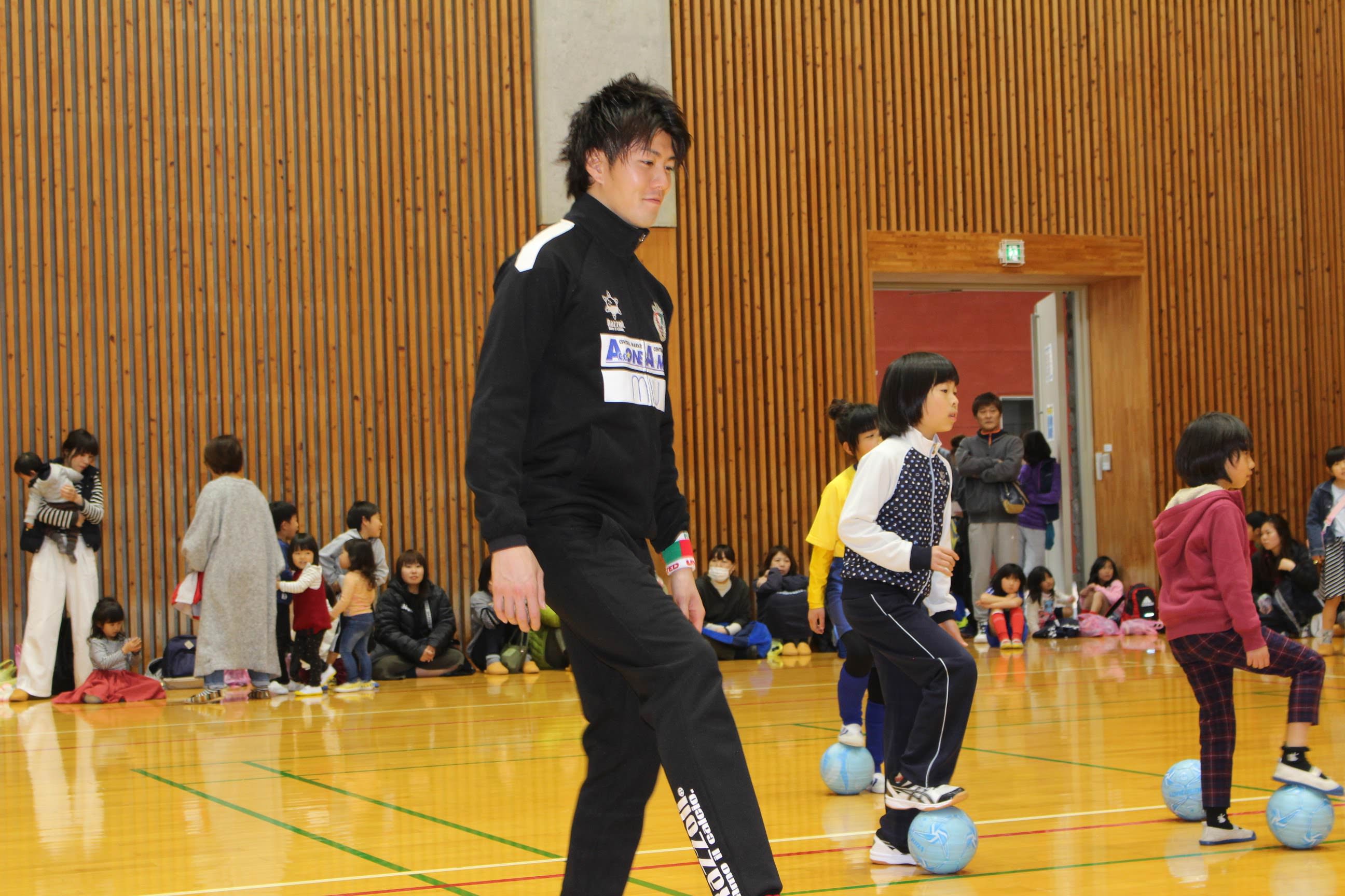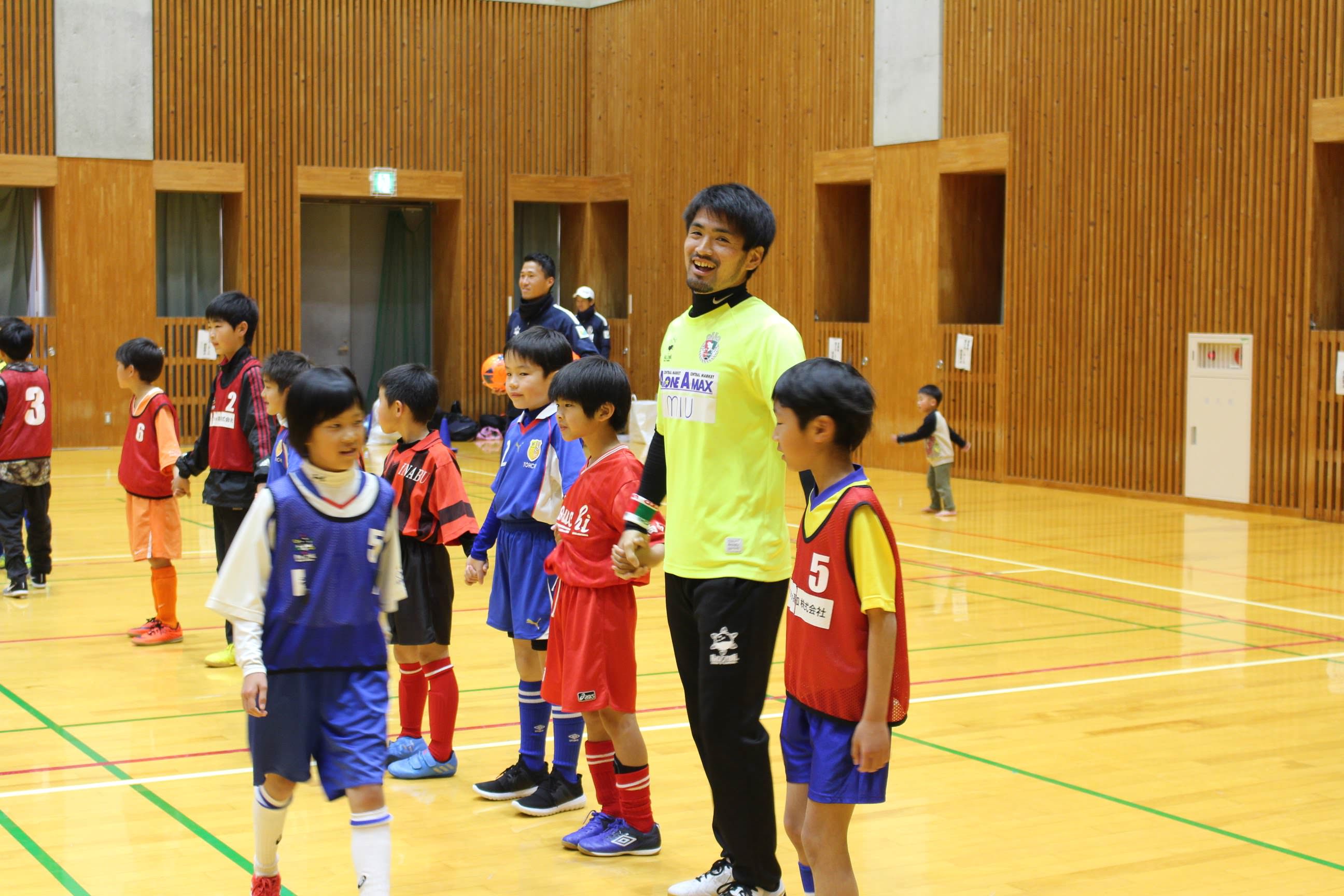 サッカー教室内のミニゲームでは子供たちのチームに選手も加わり大変盛り上がりました。