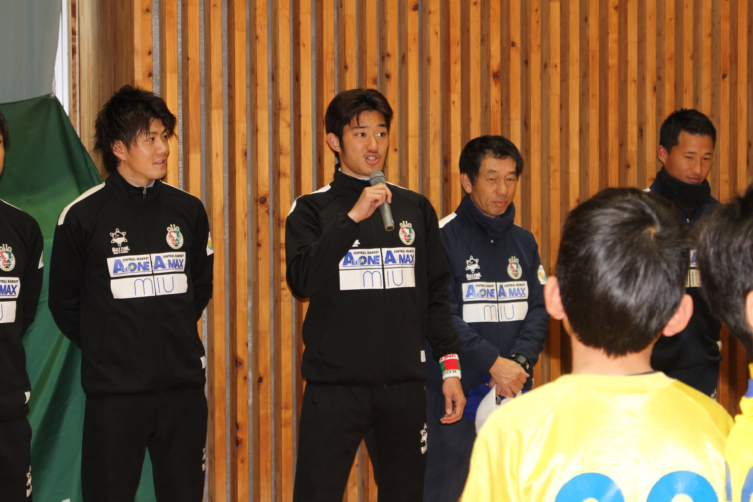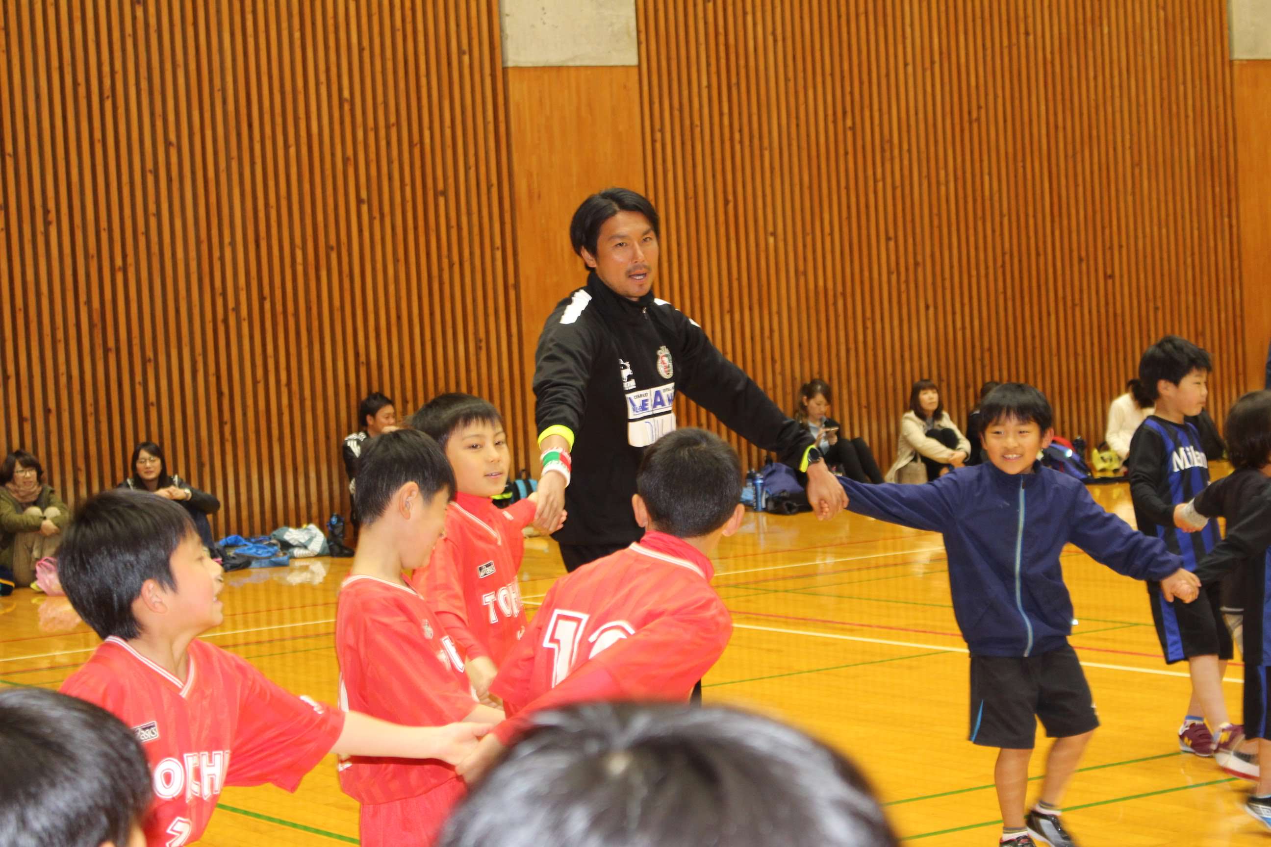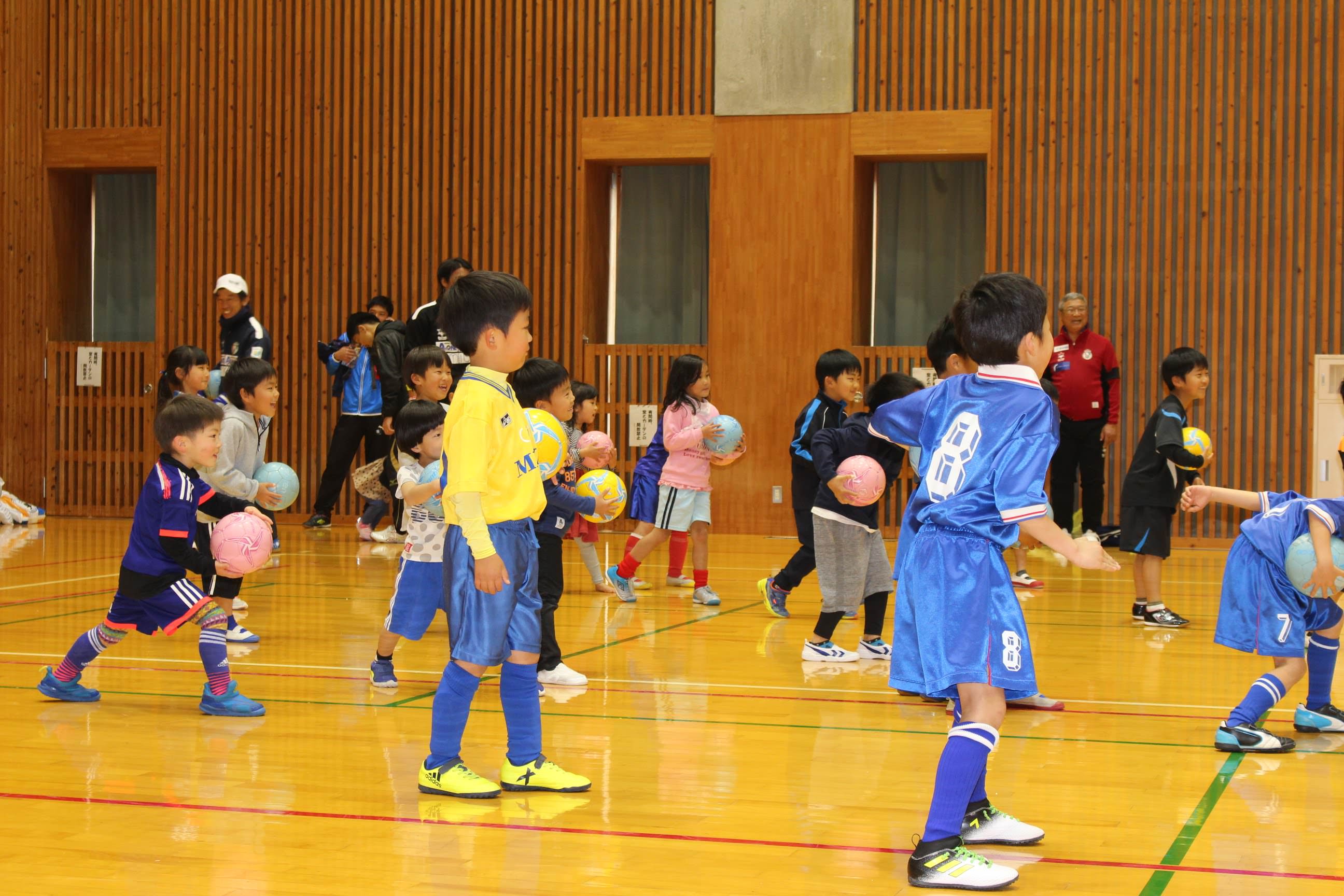 サッカー教室内のミニゲームでは子供たちのチームに選手も加わり大変盛り上がりました。