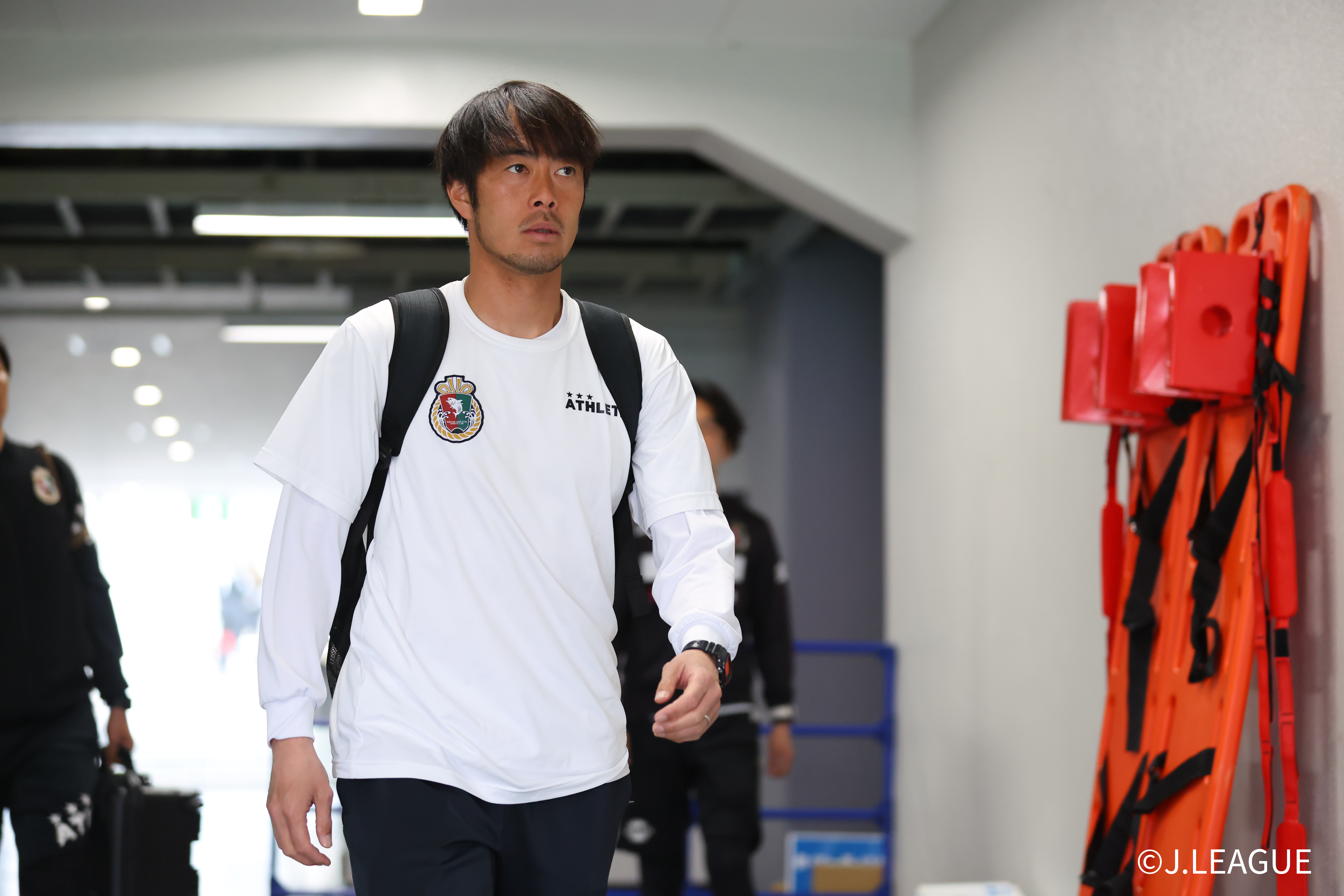 HIGASHIOSAKA, JAPAN – FEBRUARY 15: #76 MIKADO Yuta of Kochi United SC is seen on arrival at the stadium prior to the J.LEAGUE MEIJI YASUDA J2/J3 100 YEAR VISION LEAGUE 2nd Sec. match between FC Osaka and Kochi United SC at Hanazono Rugby Stadium (Higashiosaka) on February 15, 2026 in Higashiosaka, Osaka, Japan. (Photo by J.LEAGUE/J.LEAGUE via Getty Images)
