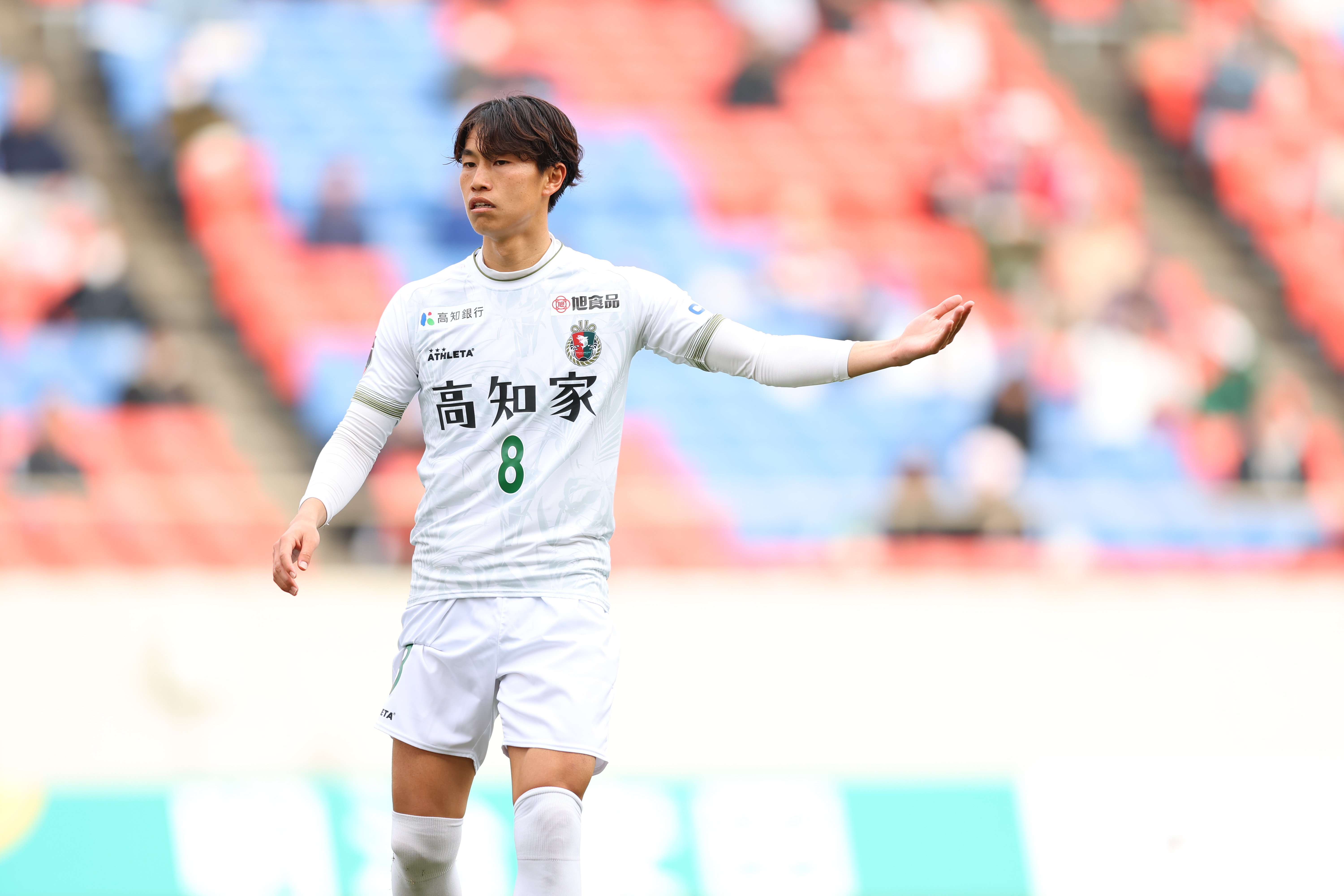 HIGASHIOSAKA, JAPAN – FEBRUARY 15: #8 TAKANO Yui of Kochi United SC in action during the J.LEAGUE MEIJI YASUDA J2/J3 100 YEAR VISION LEAGUE 2nd Sec. match between FC Osaka and Kochi United SC at Hanazono Rugby Stadium (Higashiosaka) on February 15, 2026 in Higashiosaka, Osaka, Japan. (Photo by J.LEAGUE/J.LEAGUE via Getty Images)