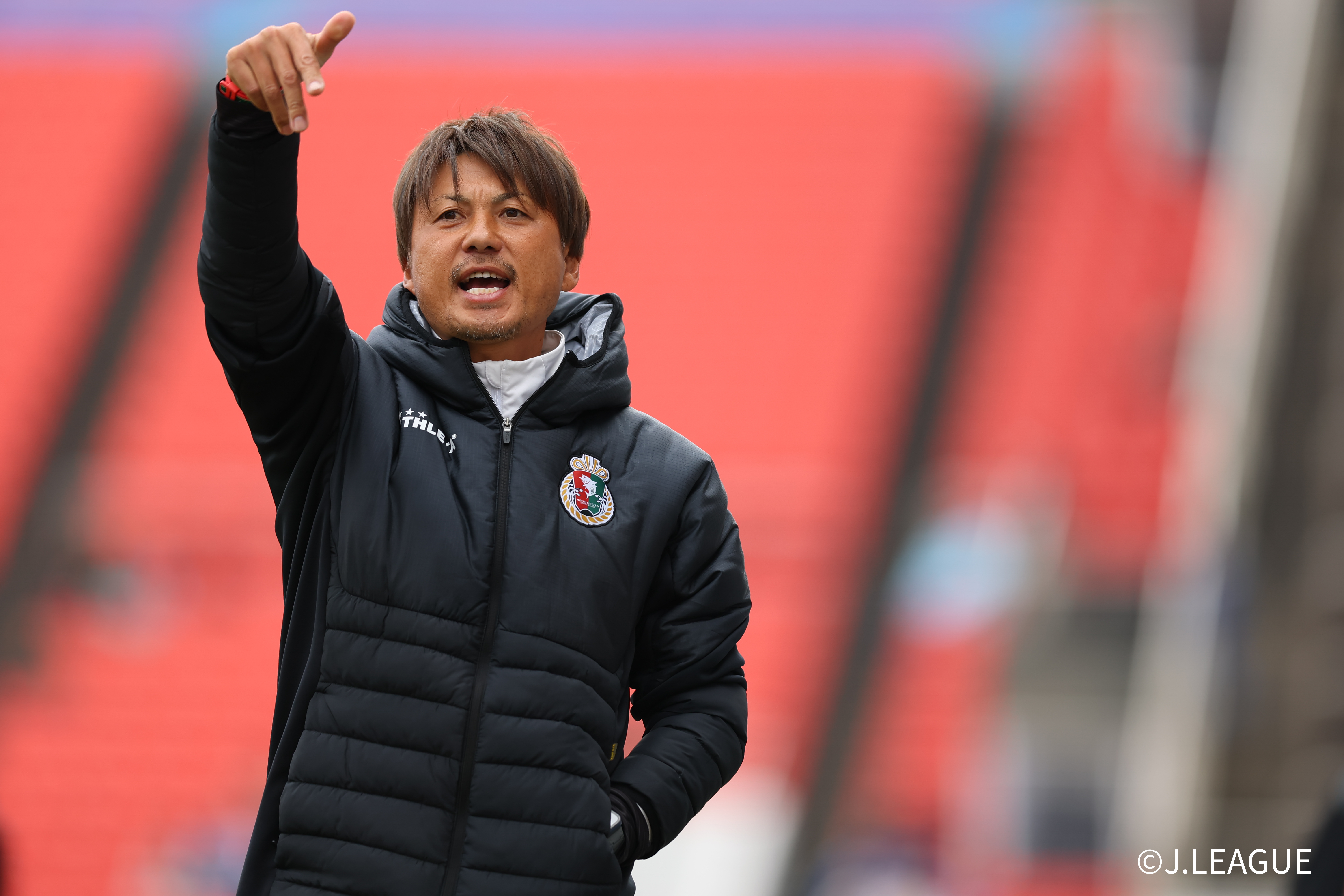 HIGASHIOSAKA, JAPAN – FEBRUARY 15: Head coach YOSHIMOTO Takafumi of Kochi United SC in action during the J.LEAGUE MEIJI YASUDA J2/J3 100 YEAR VISION LEAGUE 2nd Sec. match between FC Osaka and Kochi United SC at Hanazono Rugby Stadium (Higashiosaka) on February 15, 2026 in Higashiosaka, Osaka, Japan. (Photo by J.LEAGUE/J.LEAGUE via Getty Images)