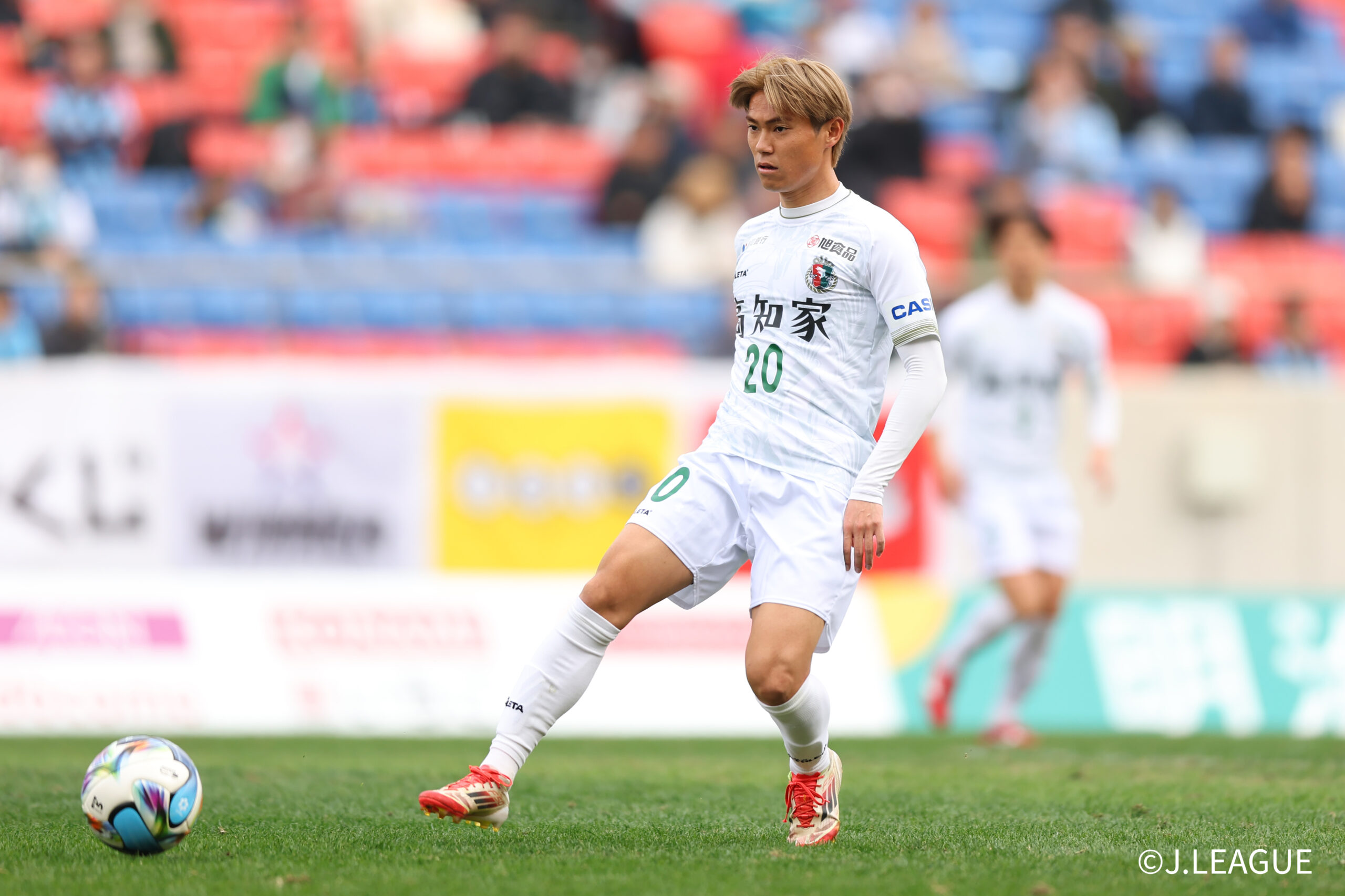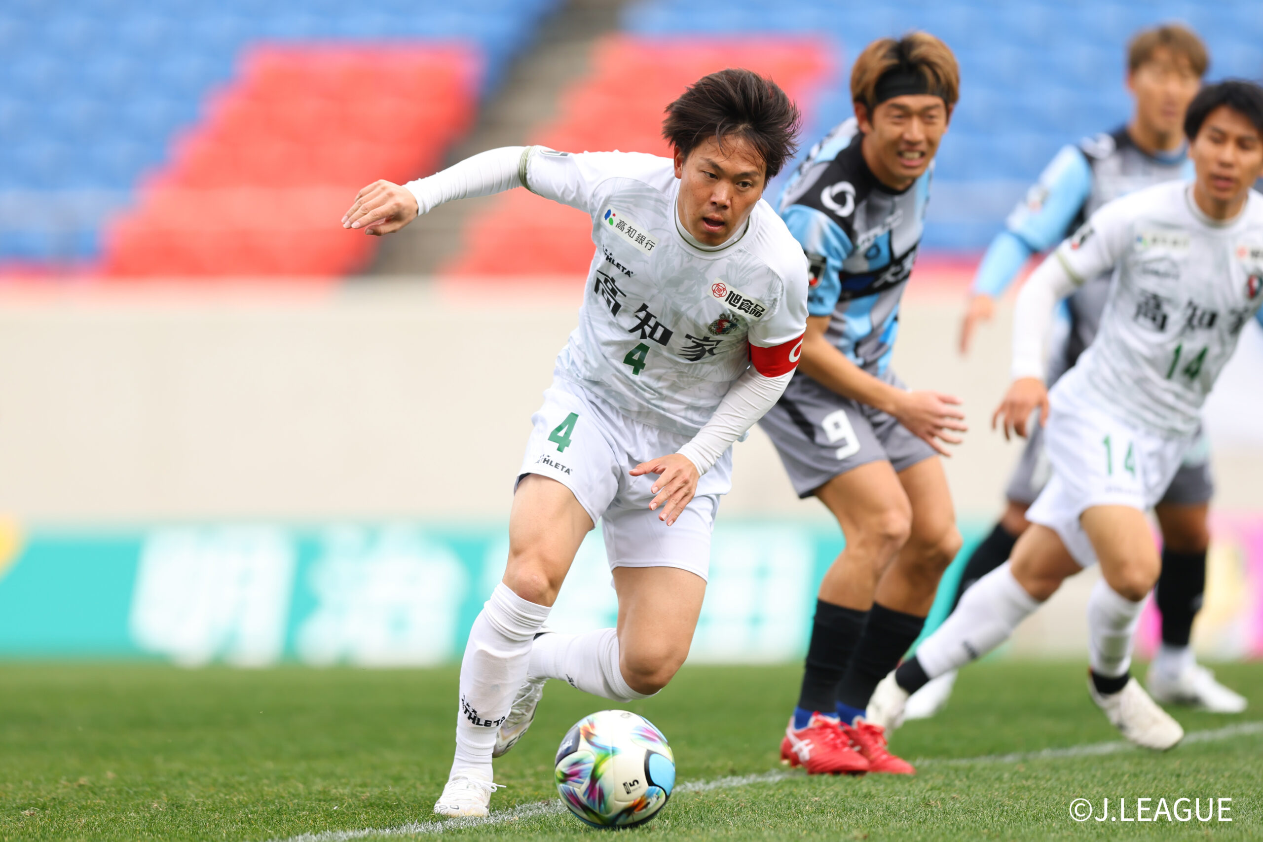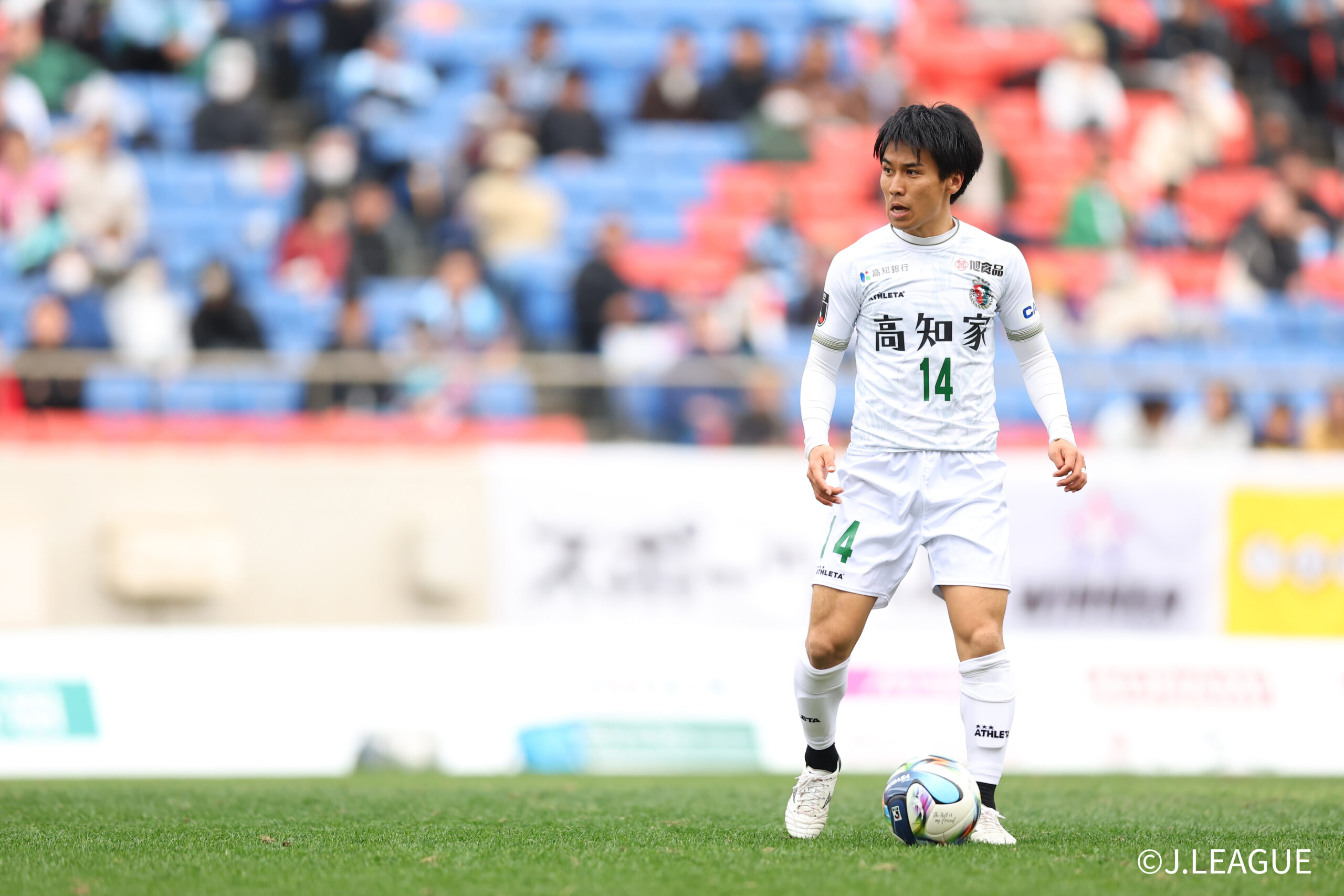 HIGASHIOSAKA, JAPAN – FEBRUARY 15: #14 SEKINO Genya of Kochi United SC in action during the J.LEAGUE MEIJI YASUDA J2/J3 100 YEAR VISION LEAGUE 2nd Sec. match between FC Osaka and Kochi United SC at Hanazono Rugby Stadium (Higashiosaka) on February 15, 2026 in Higashiosaka, Osaka, Japan. (Photo by J.LEAGUE/J.LEAGUE via Getty Images)