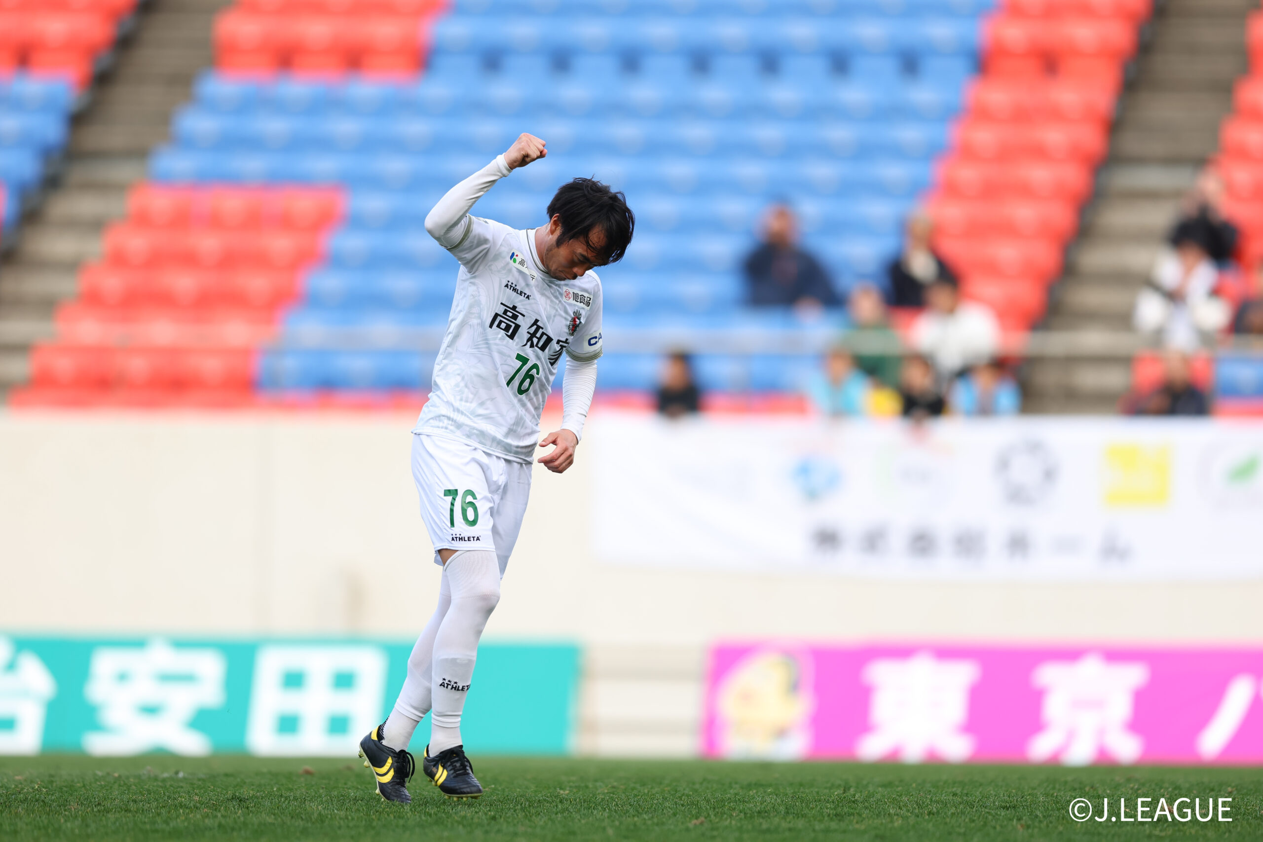 HIGASHIOSAKA, JAPAN – FEBRUARY 15: #88 HAMA Takumi of Kochi United SC celebrates scoring his side’s second goal during the J.LEAGUE MEIJI YASUDA J2/J3 100 YEAR VISION LEAGUE 2nd Sec. match between FC Osaka and Kochi United SC at Hanazono Rugby Stadium (Higashiosaka) on February 15, 2026 in Higashiosaka, Osaka, Japan. (Photo by J.LEAGUE/J.LEAGUE via Getty Images)