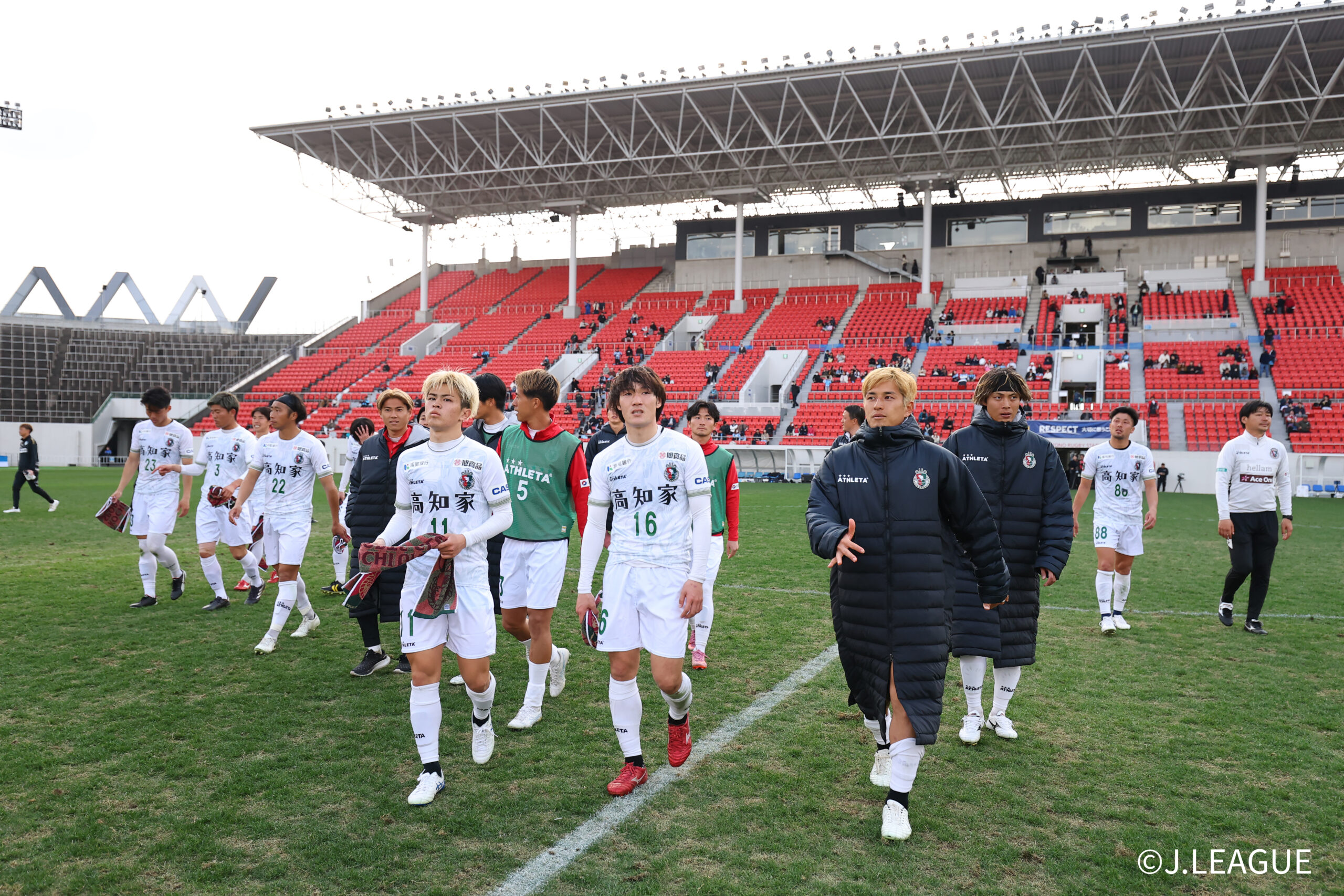 HIGASHIOSAKA, JAPAN – FEBRUARY 15: Kochi United SC players show dejections after the J.LEAGUE MEIJI YASUDA J2/J3 100 YEAR VISION LEAGUE 2nd Sec. match between FC Osaka and Kochi United SC at Hanazono Rugby Stadium (Higashiosaka) on February 15, 2026 in Higashiosaka, Osaka, Japan. (Photo by J.LEAGUE/J.LEAGUE via Getty Images)